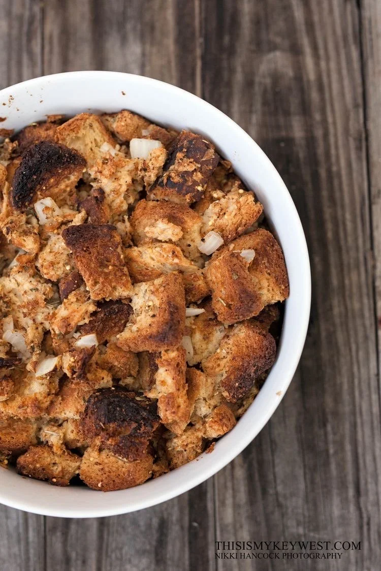 Stuffing is another one of those holiday dishes that I actually never liked. Maybe it's because the bread was slowly killing me lol. In all seriousness though I just never really cared for it. My mom always made the kind where the crumbs and seasonings came in the bag all ready to go, just add broth. I always made it the same way. I experimented a few different ways and never liked it, even after I learned to not cook it IN the bird and make it separately.